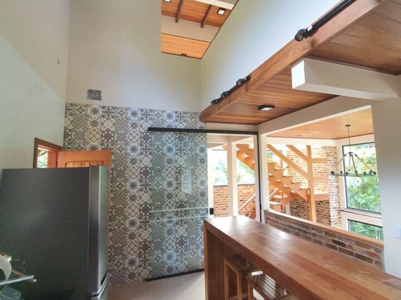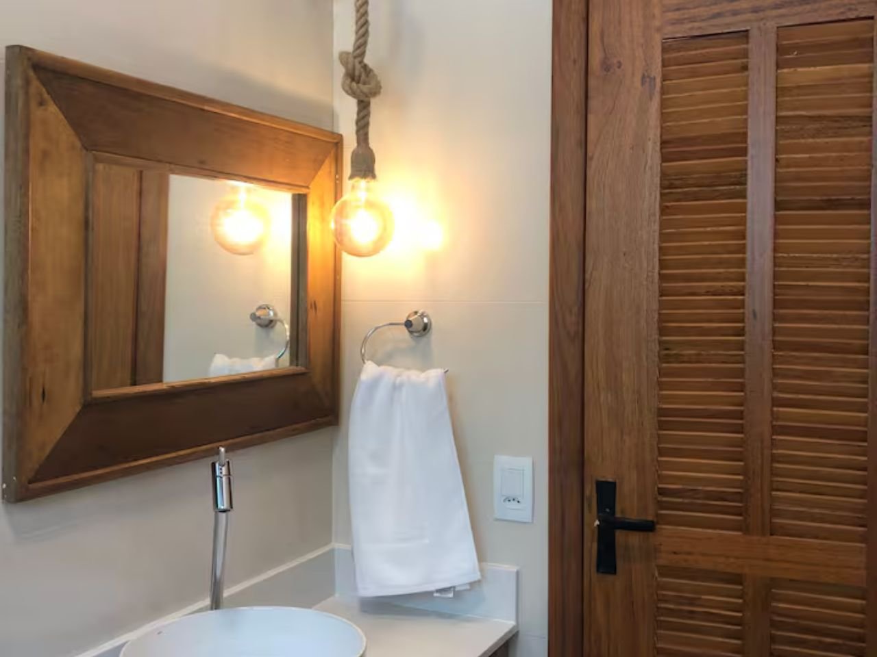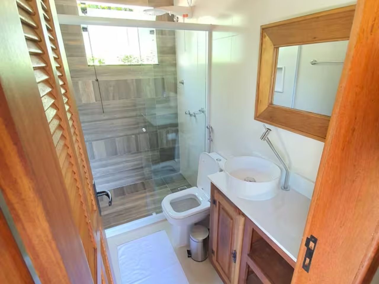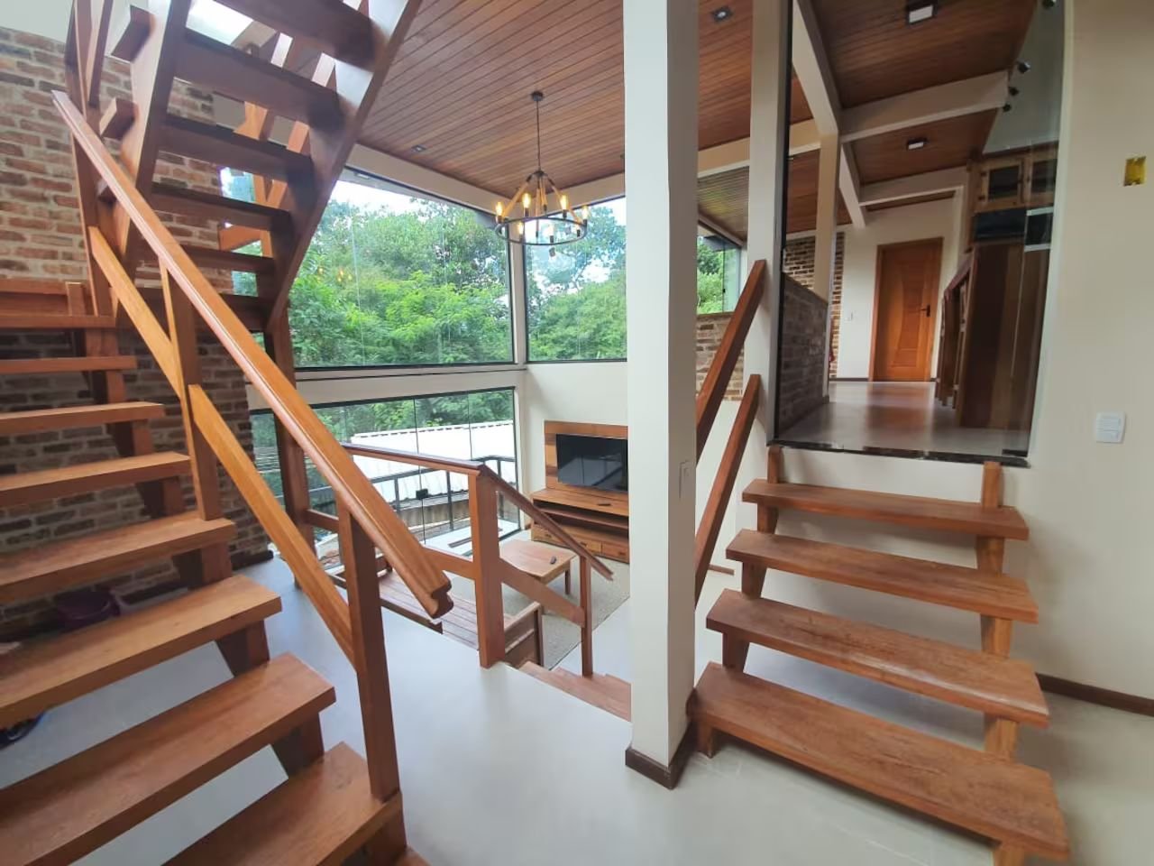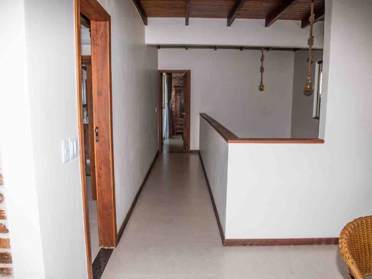 Com decoração rústica e clean, esta casa oferece uma vista panorâmica marcante para o mar e ambientes integrados à natureza. Os quartos possuem sacada e vista para a Mata Atlântica.