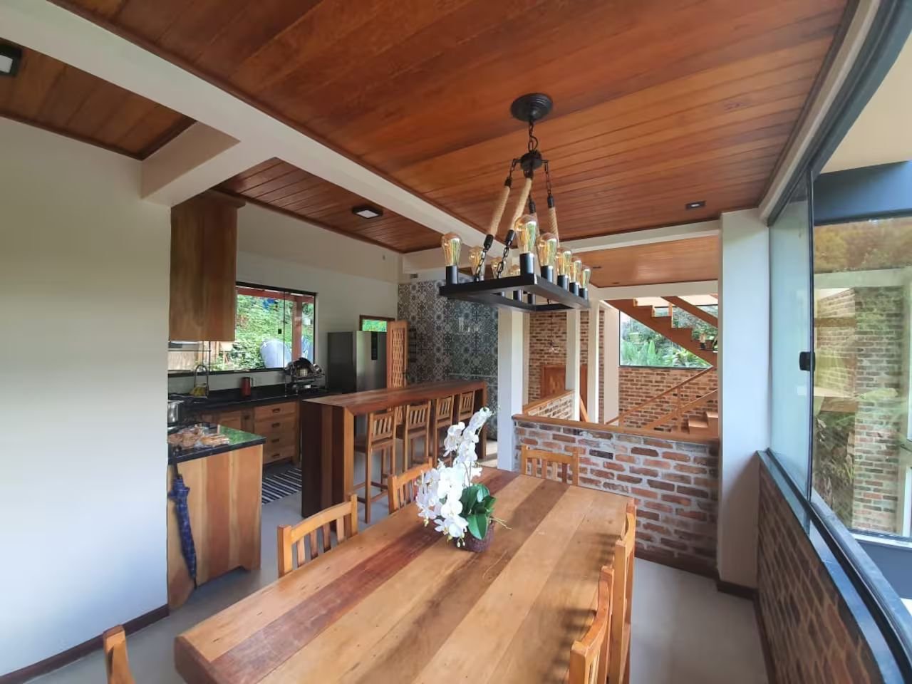 O espaço foi pensado para receber grupos grandes com conforto e personalidade.
