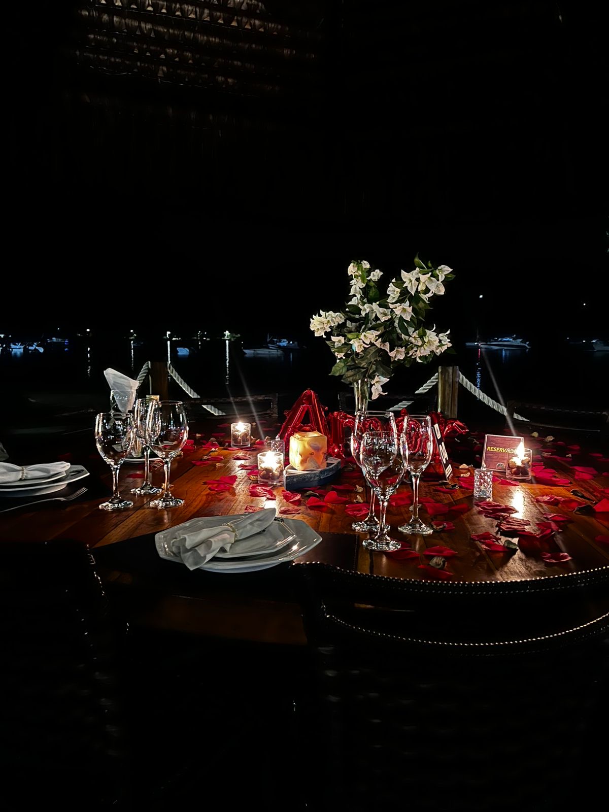 Além de pratos deliciosos, o casal vai desfrutar da ambientação romântica da nossa embarcação e uma experiência exótica e afrodisíaca.